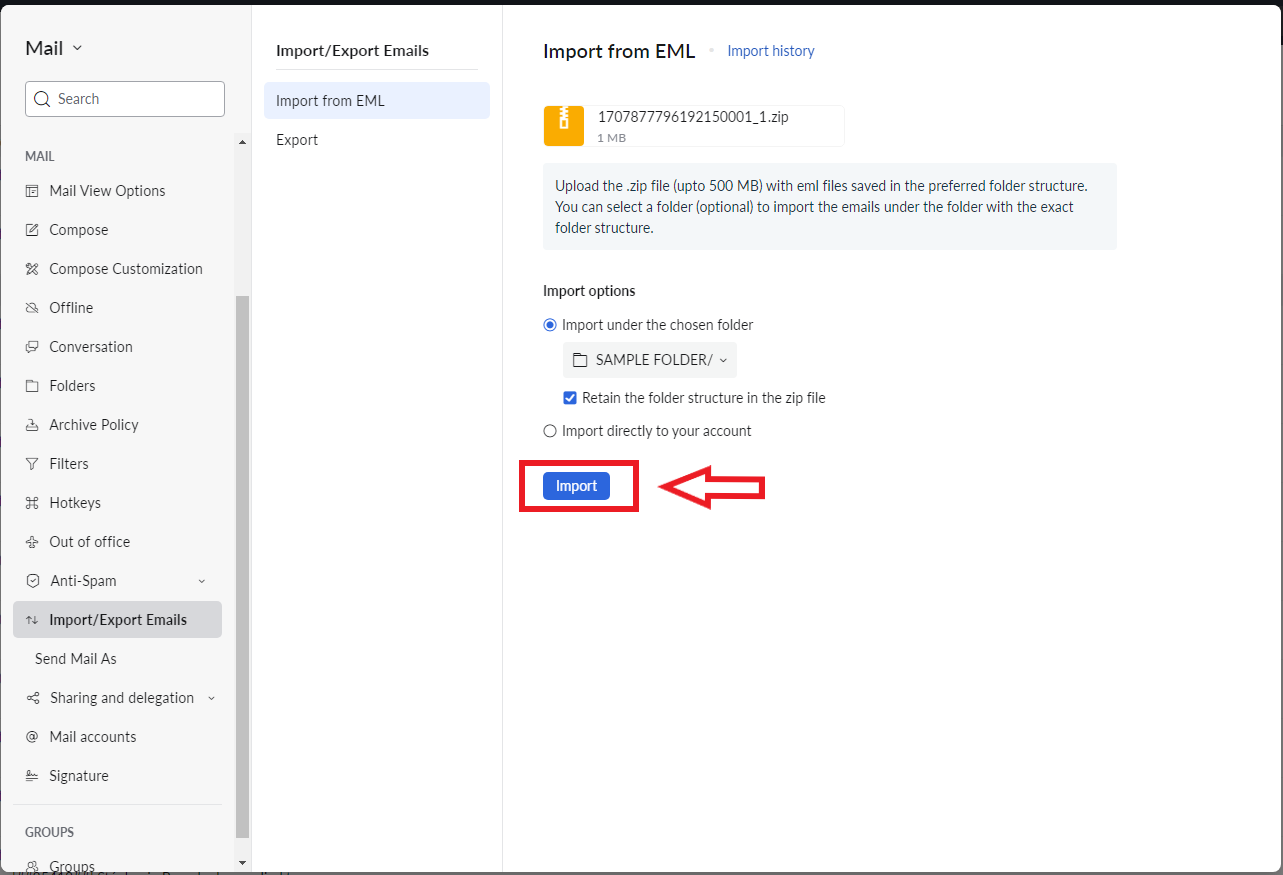 - Select Folders: Choose the folders or labels from your existing email account that you want to import into Zoho Mail. You can usually select specific folders or import all emails. Then select the import button to initiate the process.